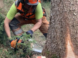 Unsere Stärke liegt in der konventionellen Holzhauerei. Besonders spezialisiert haben wir uns auf das Fällen - Rüsten - Rücken von schweren Bäumen aus unwegsamen Gebiet. Dafür steht uns ein Forstschlepper zur Verfügung.